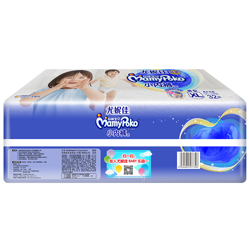 Unijia mommy baby panties XL size 32 pieces dry and breathable male and female baby diapers