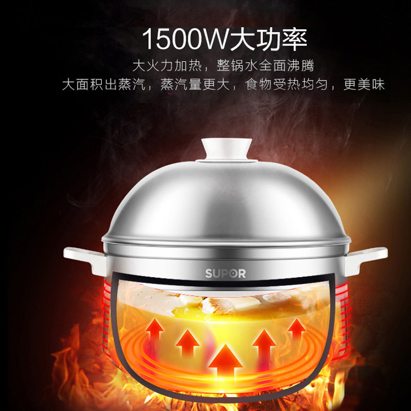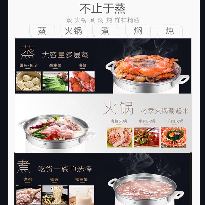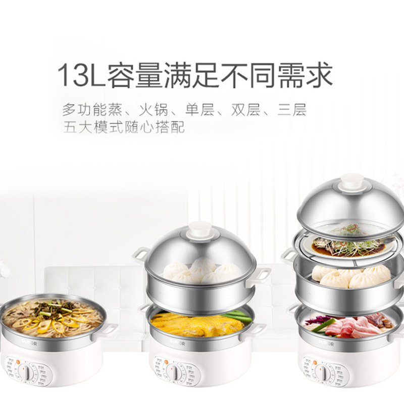 Supoir electric steamer Home three-layer Multi-functional Large-capacity Steamed Vegetable electric steamer Timed Steam Pot of Steamed Cage