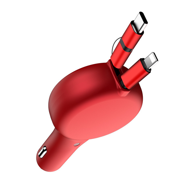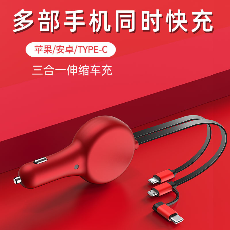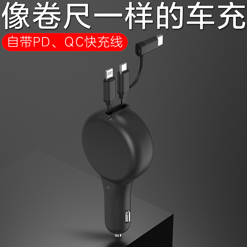 Vehicular charger telescopic suitable for Apple PD fast charging line for car charger QC3 0Type-c Android mobile phone shrinking data line one drag two multifunction cigarette lighter usb turn connector
