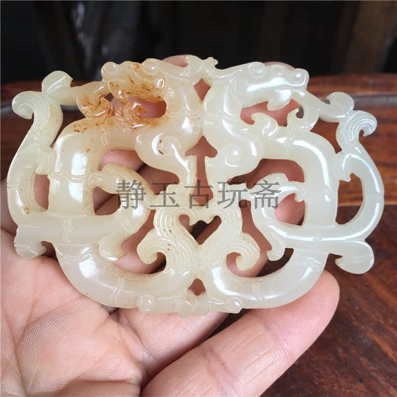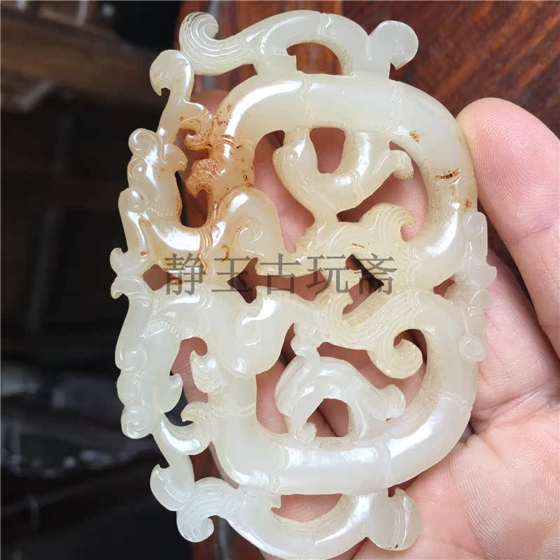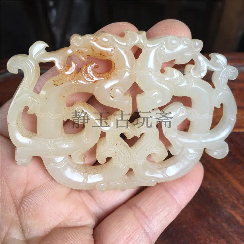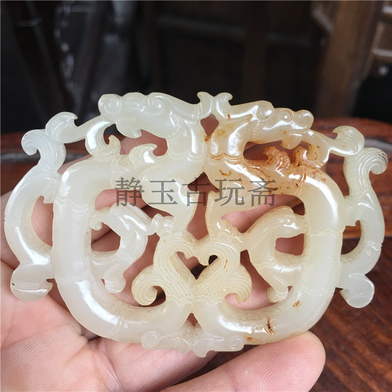 Imitation Han pendant Erlong double presents Xiang imitation ancient Pei decoration Old Outer Mongolia Fancy Old Jade Carving Double Dragon Hollowed-out Jade Wall