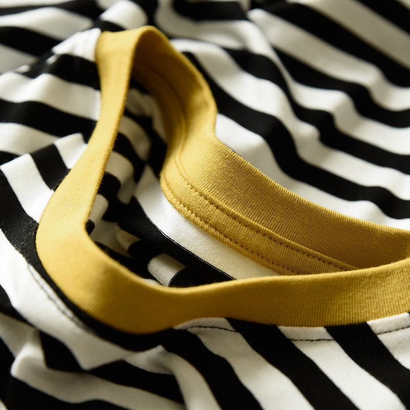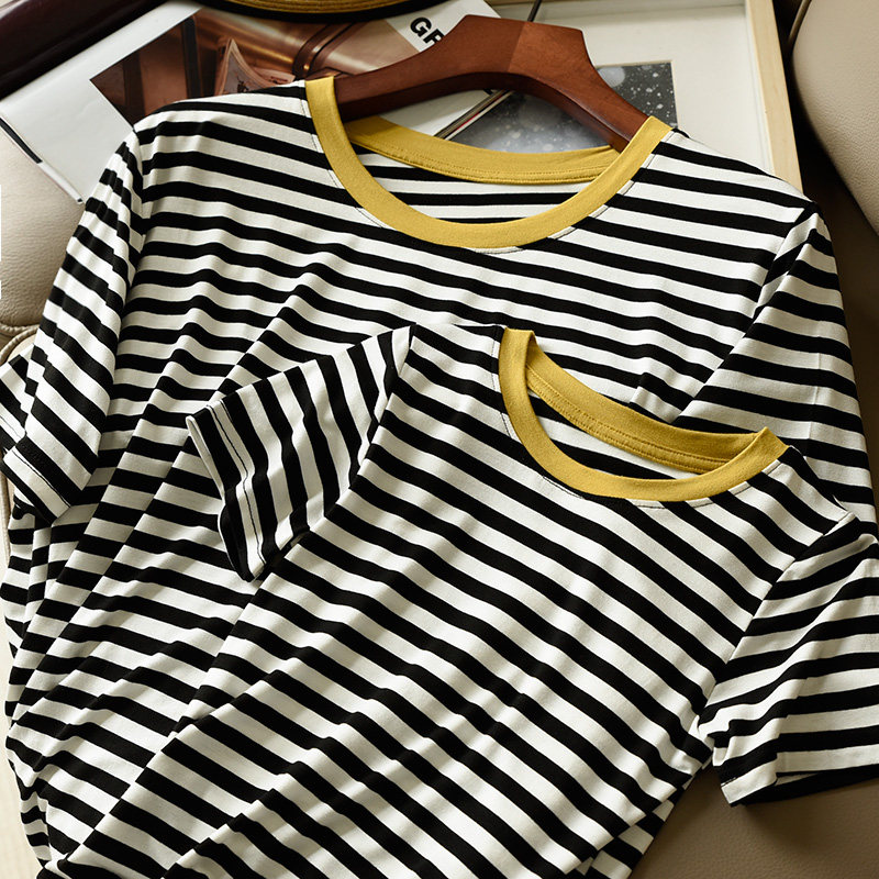 Black and white striped contrast short sleeves