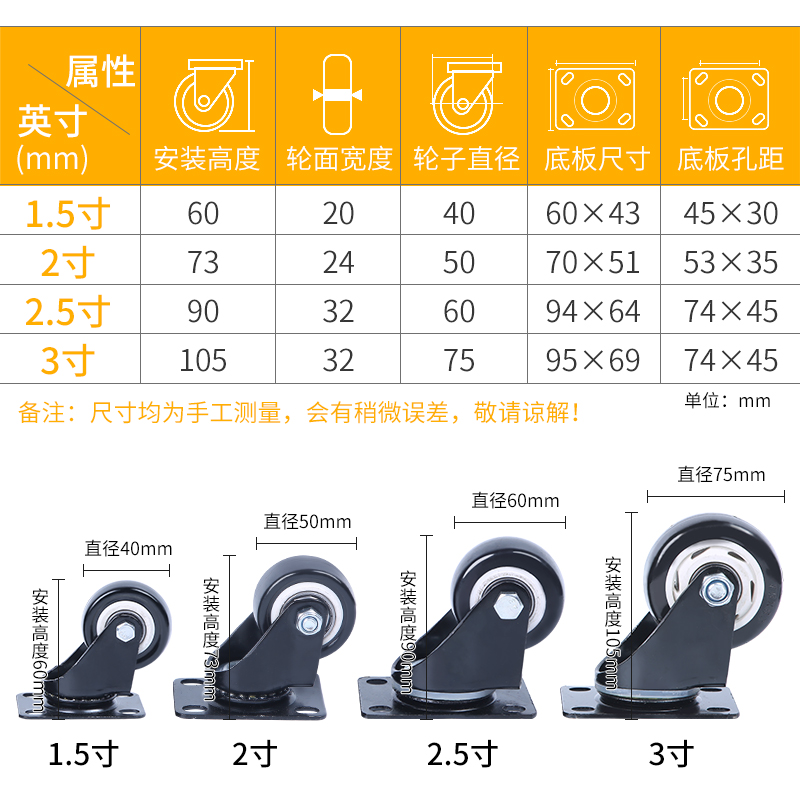 Universal wheel caster 1.5 inch 2 inch 2.5 inch 3 inch silent caster brake wheel directional wheel furniture wheel luggage wheel