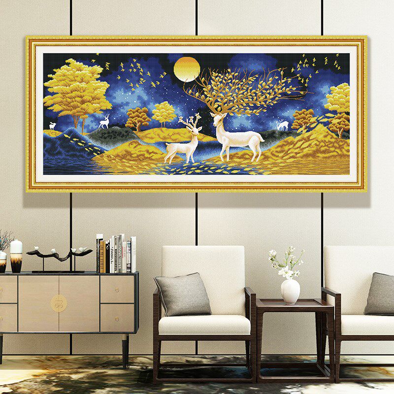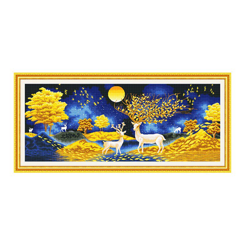 KS cross stitch golden light Fulucai European style elk creative wild lucky scenery living room study self embroidery