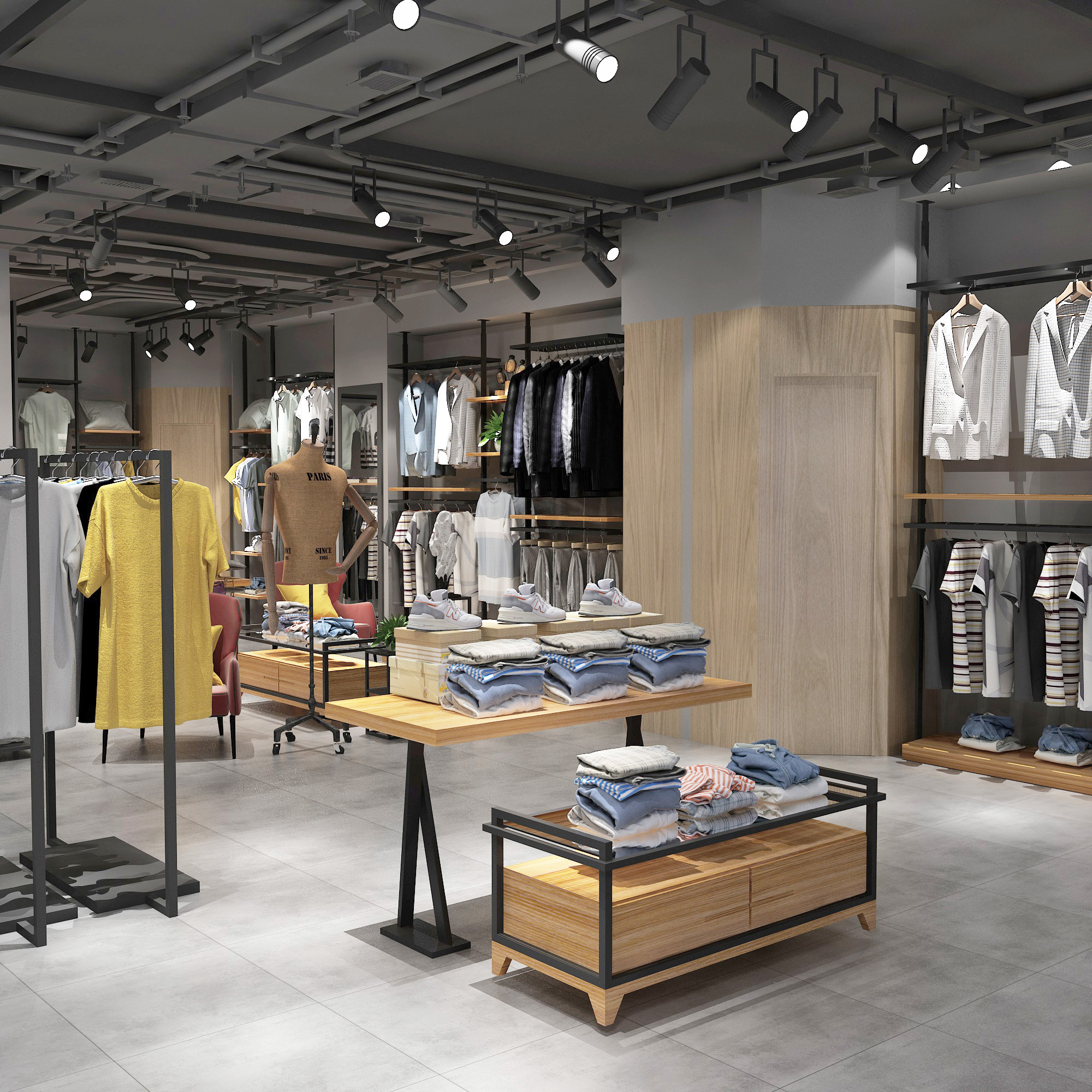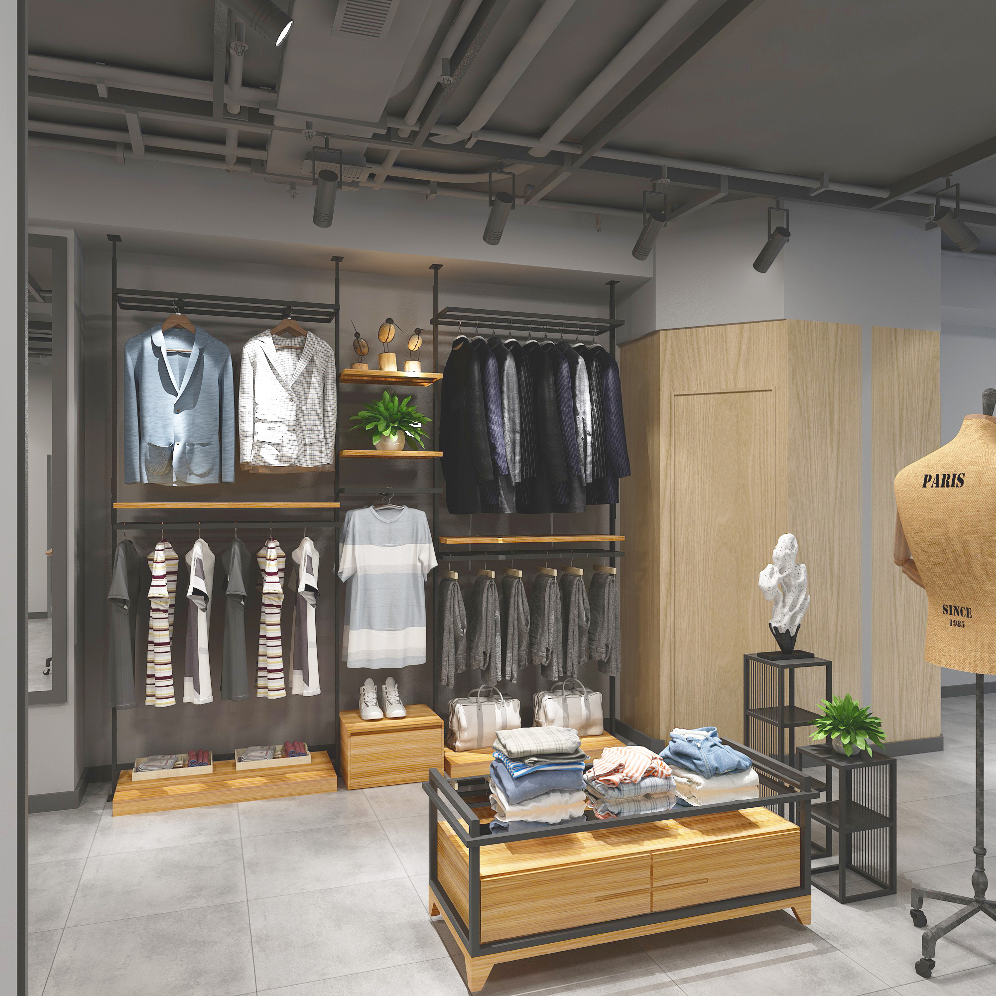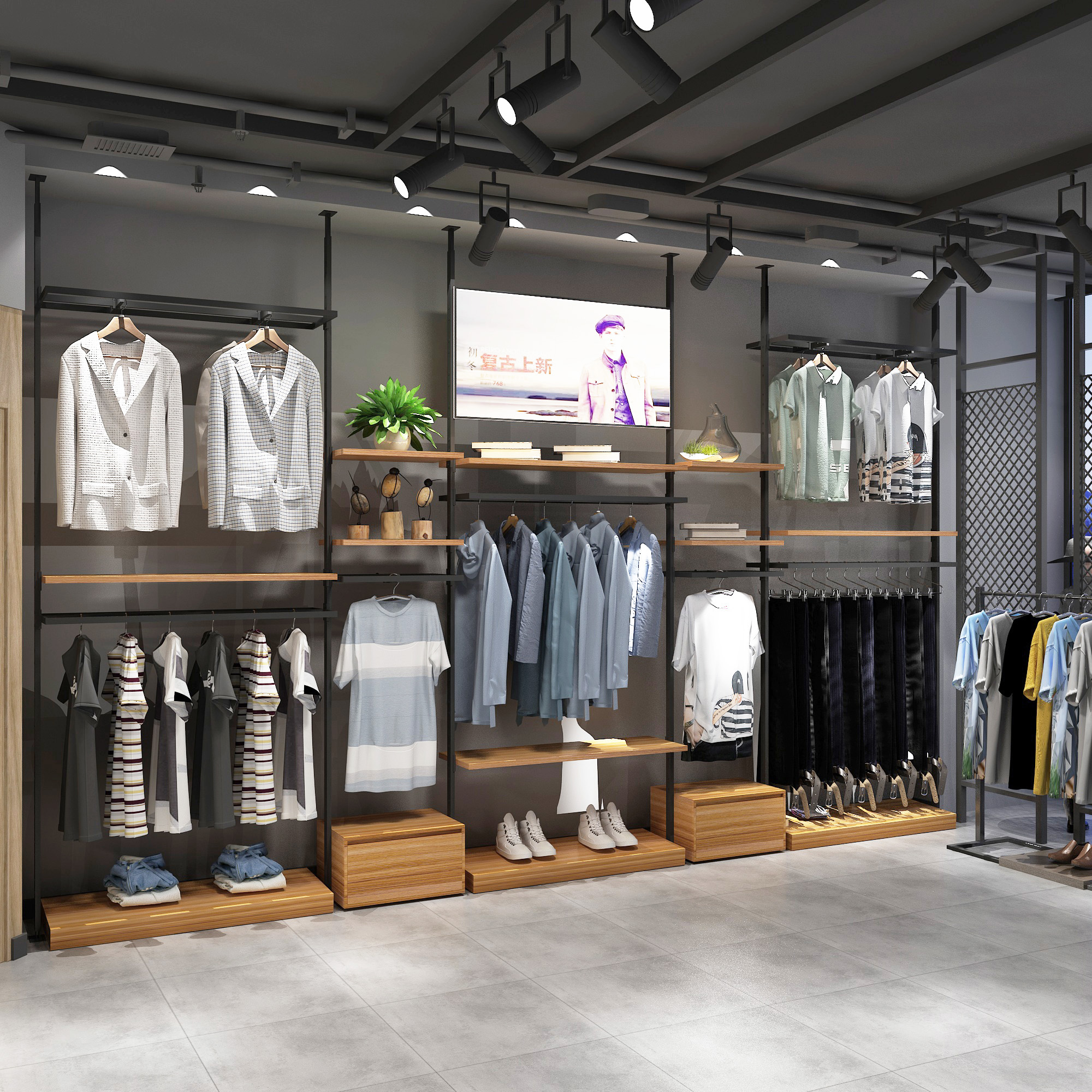 2020 new men's clothing store display stand high-end creative wall clothing store metal floor-to-ceiling double-layer shelf display