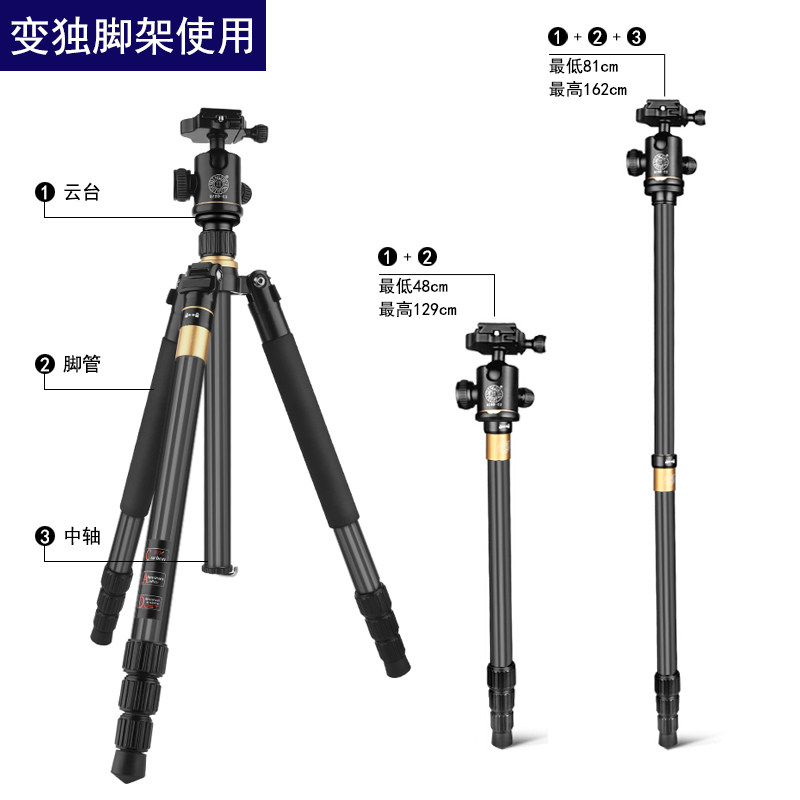 Light era Q222C carbon fiber portable panoramic gimbal mobile phone stand SLR camera tripod