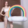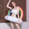 Net red sequins rainbow clouds swimming ring female adult water inflatable toy large 90cm girl swimming ring photo