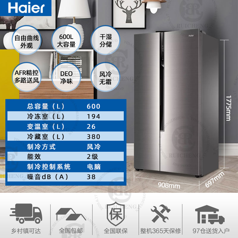 Haier Home 600 Litres Open Double Door Frequency Conversion Air-cooled Frost-free Refrigerator Official BCD-600WDEA