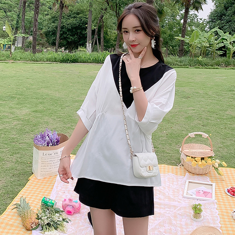 Pregnancy Maternity Dress Summer Suit Out of Summer Fashion Tidal Moms Net Red Summer Short Sleeve Shorts Cover Casual Two Sets