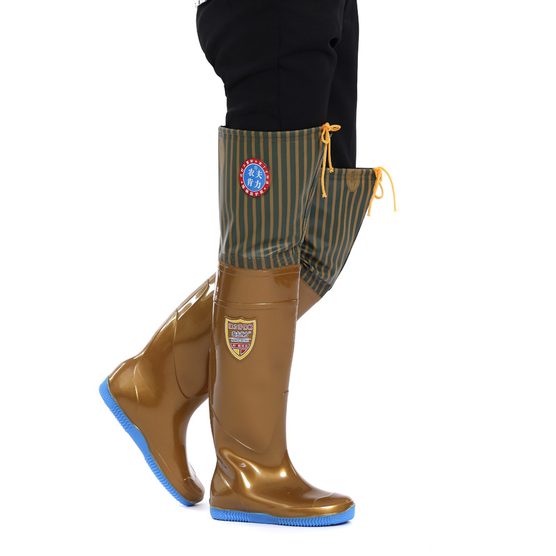 Huu Deer Transplanting Boots Soft-bottom Rain Shoes Paddy Field Shoes High Cylinder Sewer Pants Farmland Non-slip Boots Water Shoes Water Boots Earth Gold 616