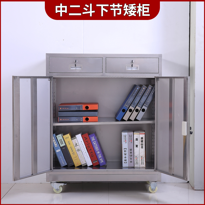 304 stainless steel filing cabinet low cabinet middle two bucket tool cabinet medical storage drawer movable cabinet wheeled bedside cabinet