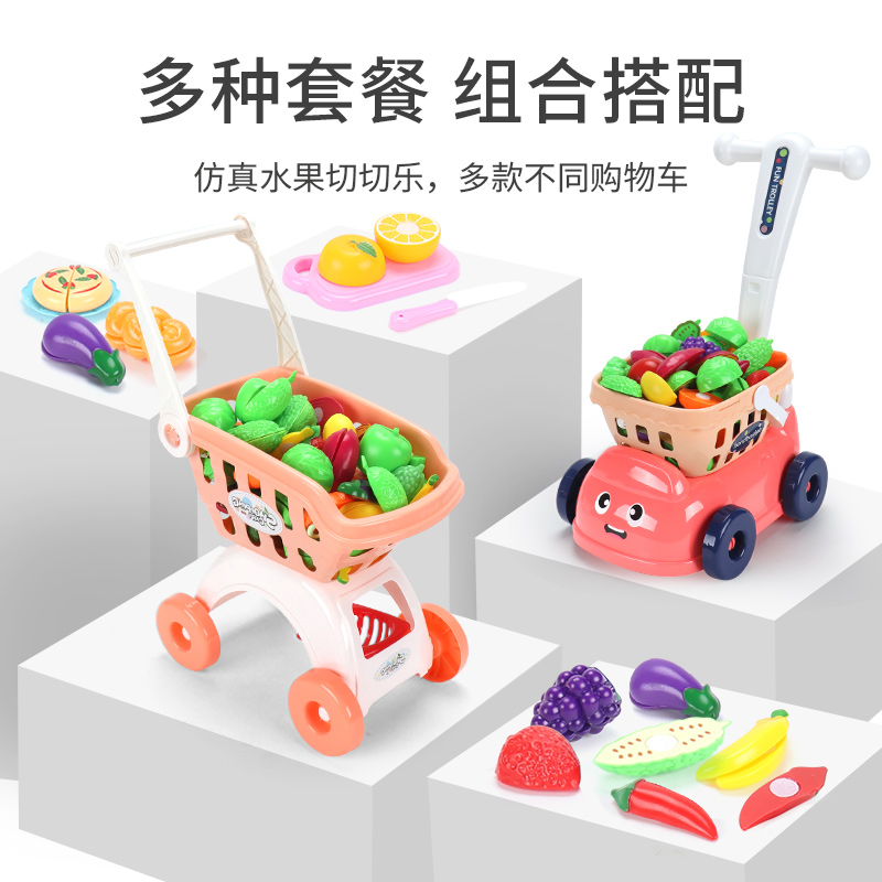 Hui Cheng Children's Shopping Cart Toy Girl Kitchen Cut Fruit Emulation Small Trolley Baby Dress Home Wine 2-3 years old