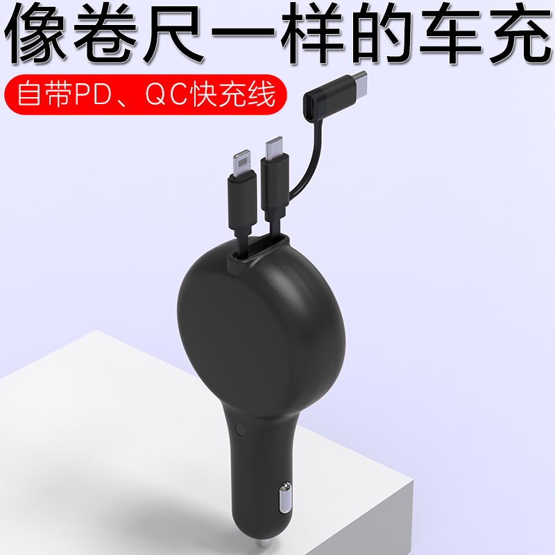 Vehicular charger telescopic shrink-type data line one drag two-one-three-point cigarette lighter 12V24V multifunction mobile phone PDQC fast-charging flash charging line