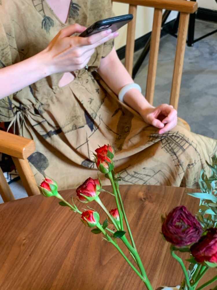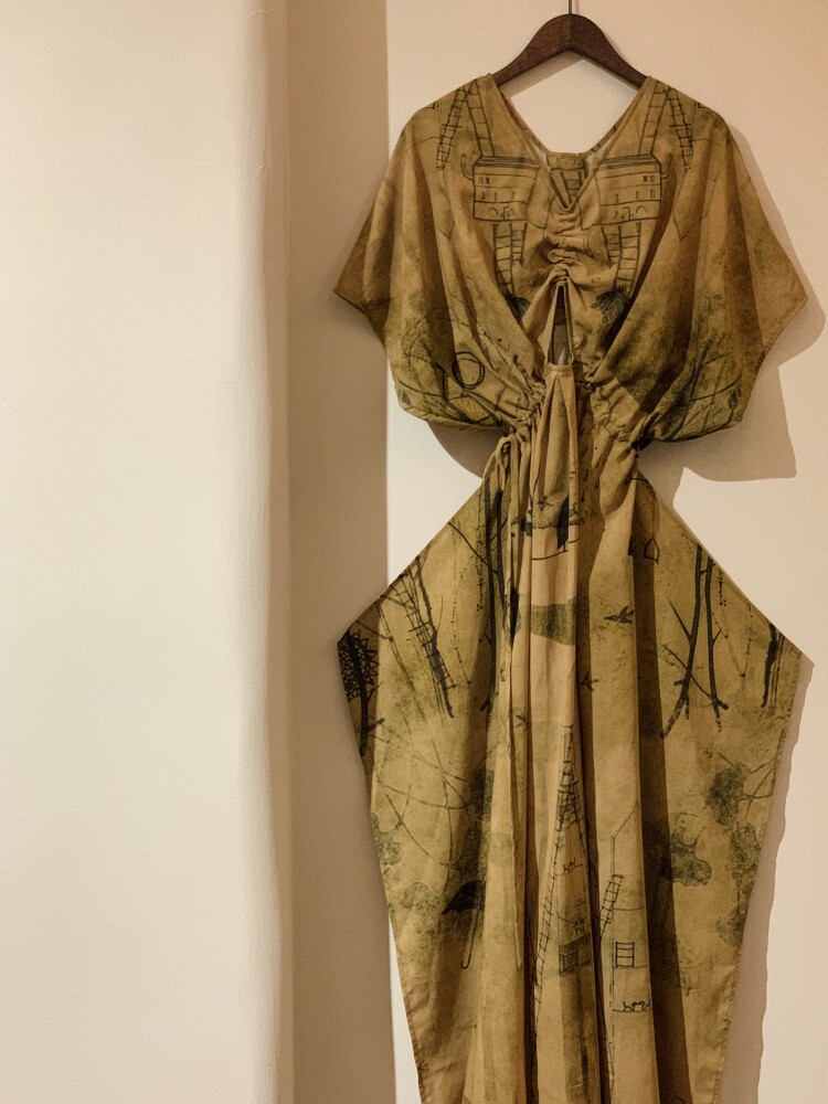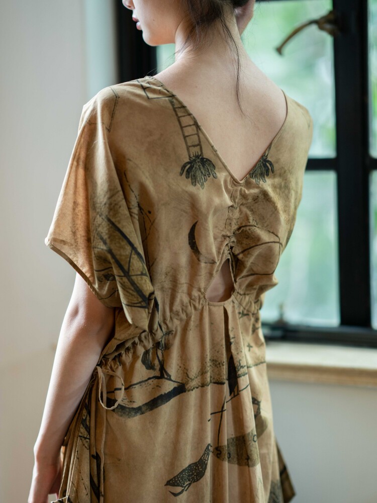 Cha Official ) Chá Printed Silk Cotton Loose Dress (Can be worn Front and Back)