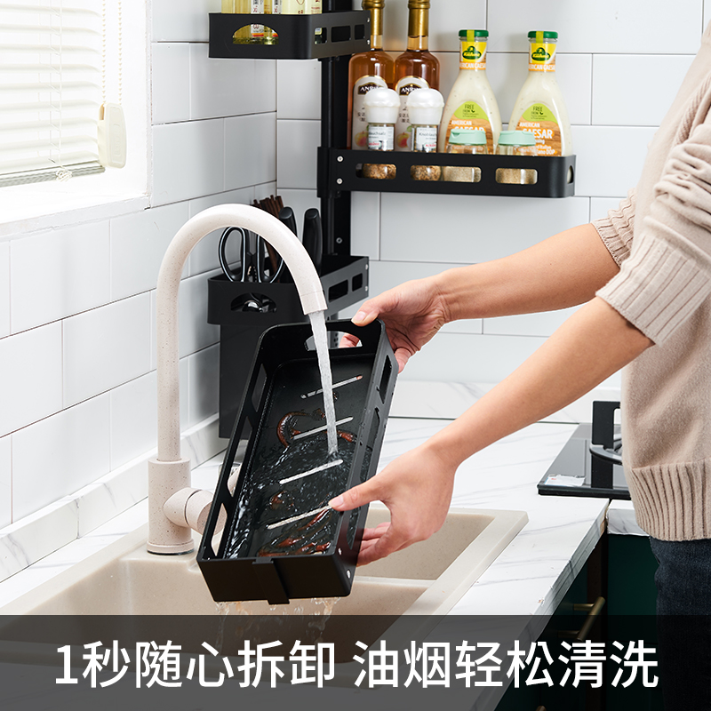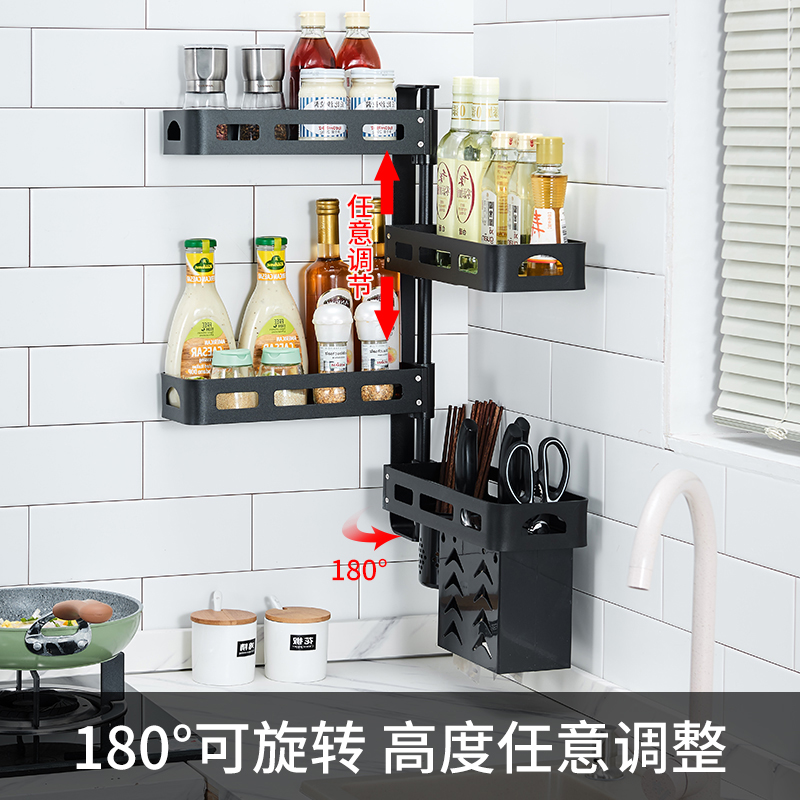 Kitchen rack rotary storage seasoning rack non-stainless steel multi-layer punch-free corner wall hanging multi-function