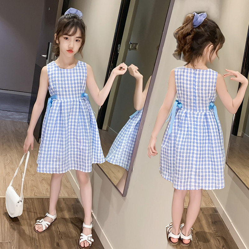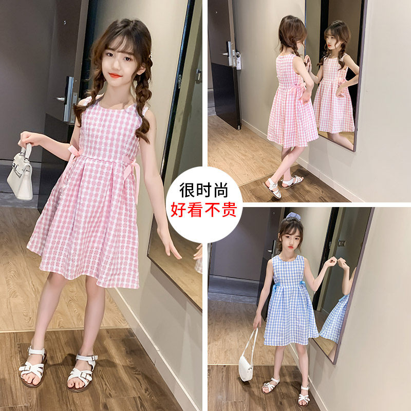 Girls dress summer dress 2022 new Korean version of the foreign style in the big child fashion little girl sleeveless plaid princess skirt