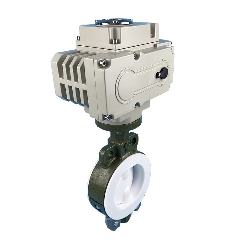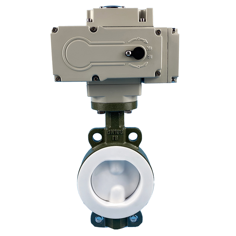 D971F46-16 lined with tetrafluoro-acid-base corrosion-resistant explosion-proof chemical cut-off wafer type electric butterfly valve DN50-100