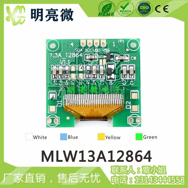 1 3 inch 12864 monochrome OLED module SSD1306 IIC I2C interface 128X64 OLED module