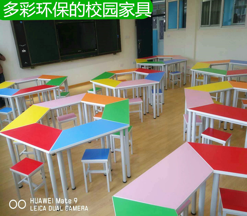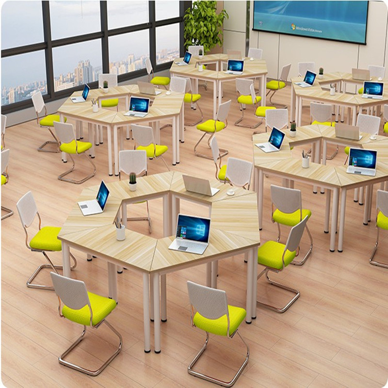 Chair and chair composition hexagonal training table for students in primary and middle school class table coaching class view classroom fine dining table color trapezoidal table