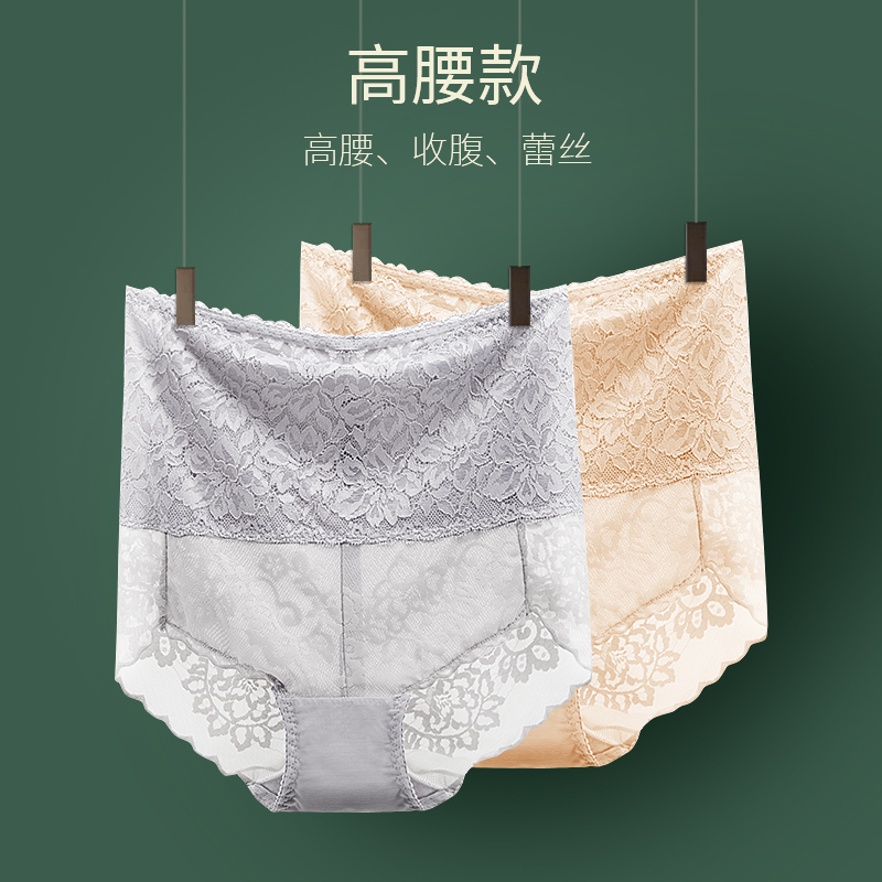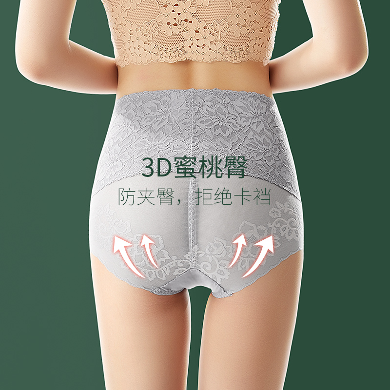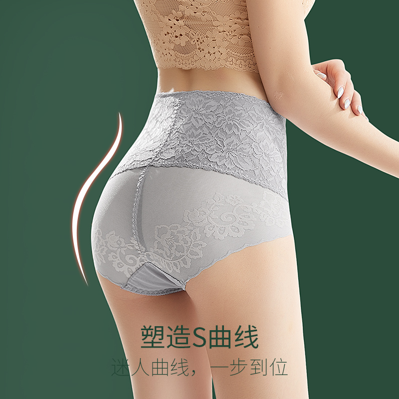 High waist underpants female lace pure cotton antibacterial crotch bunches belly pants with small belly powerful no-dent shaping bunches waist lifting hip thin