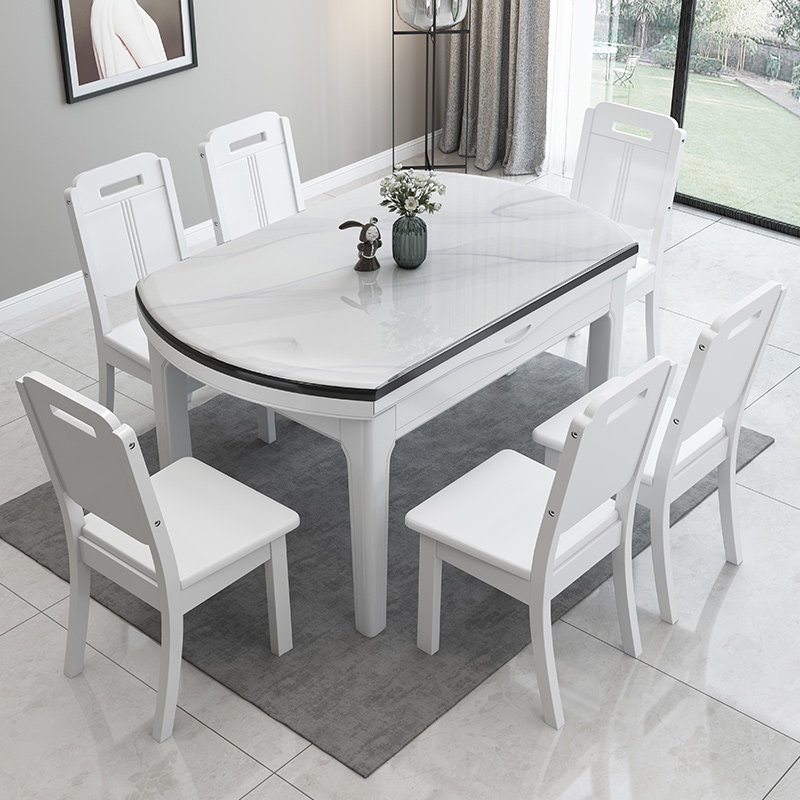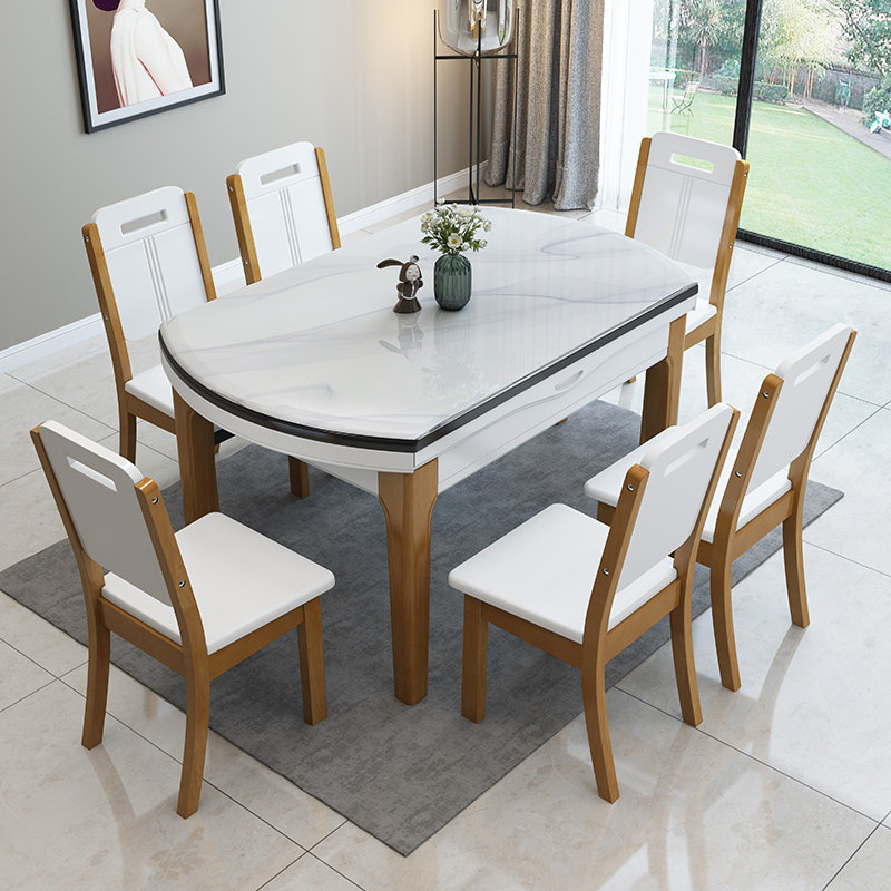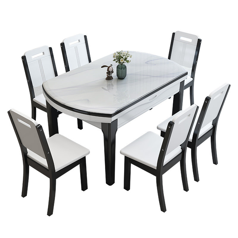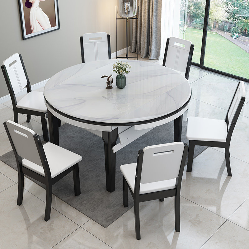 Marble dining table and chairs combined modern minimalist home small family type telescopic folding folding bright light rock plate eating table