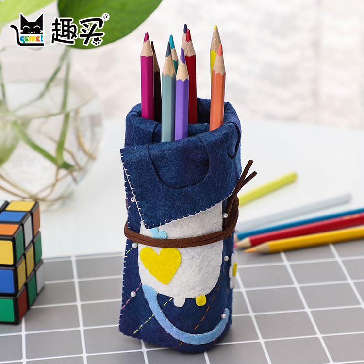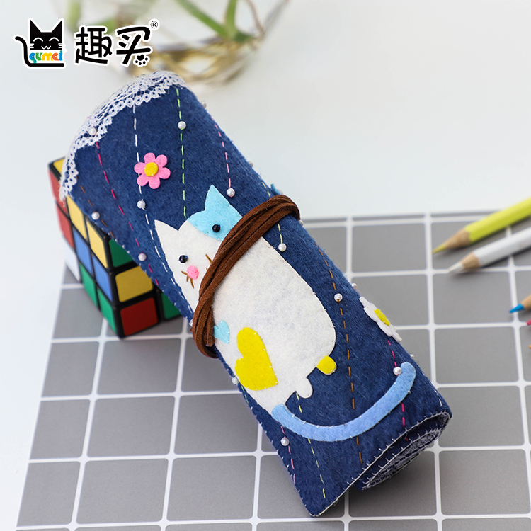 Kitten roll pen bag Stationery Children's non-woven DIY handmade toy material bag set Fabric free cutting