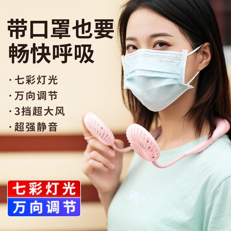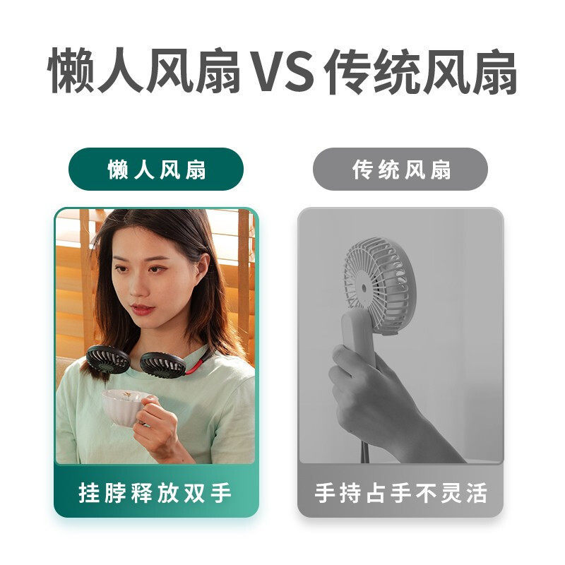 Halter neck fan Lazy fan usb portable small electric fan Student movement small mini desktop portable rechargeable handheld headset hanging neck kitchen net celebrity shaking sound with the same style hanging neck
