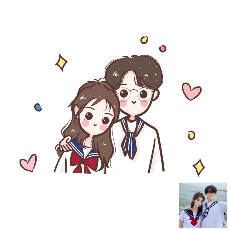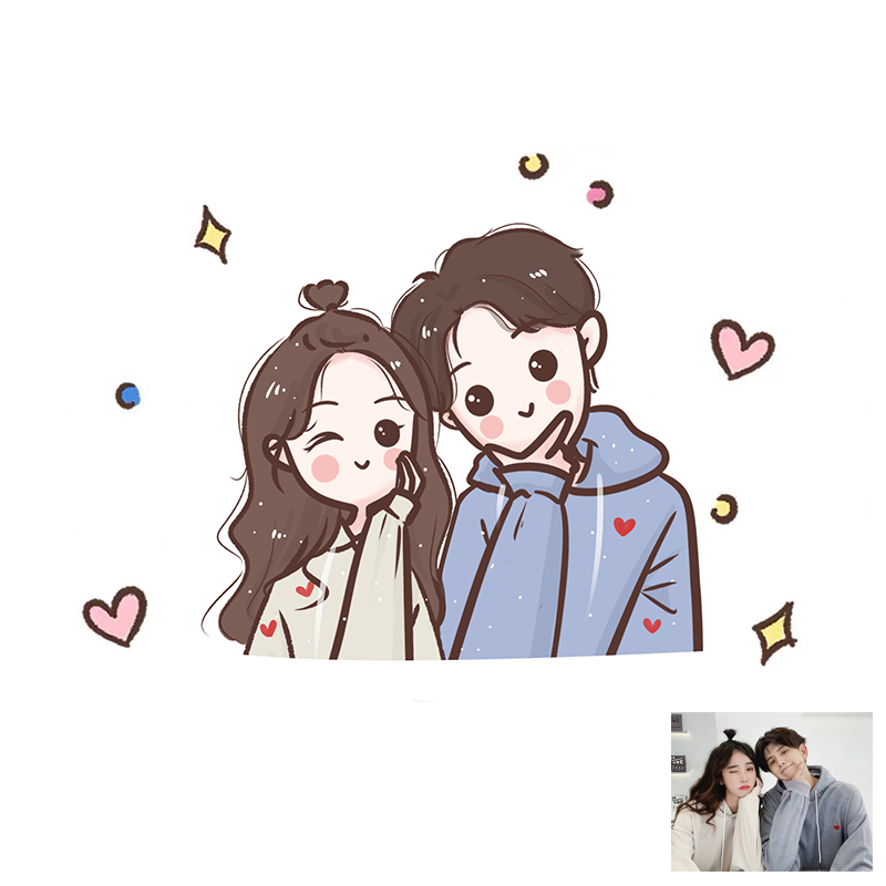 Hand-painted Q version of Jane Meng's small head cartoon couple photo design mobile phone protective shell pattern custom wallpaper simple pen cartoon