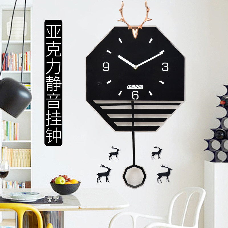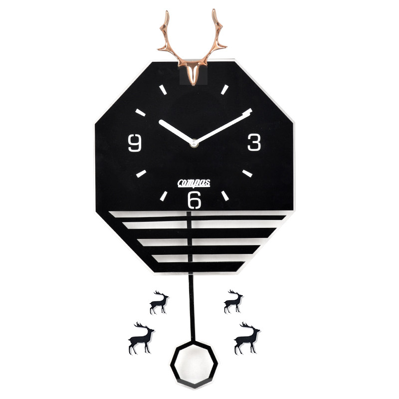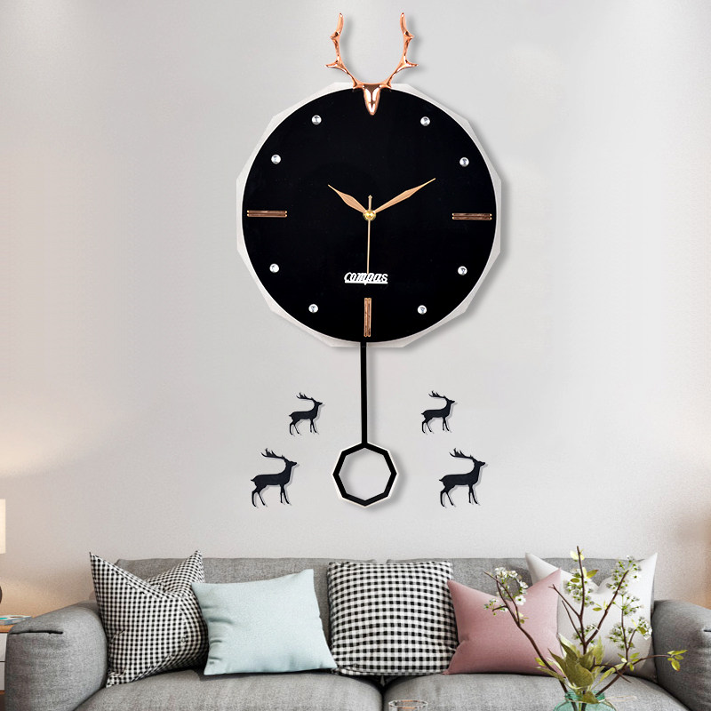 Deer head hanging bell Nordic Living room minimalist modern art form hanging wall Home online Red creative muted watches Combats