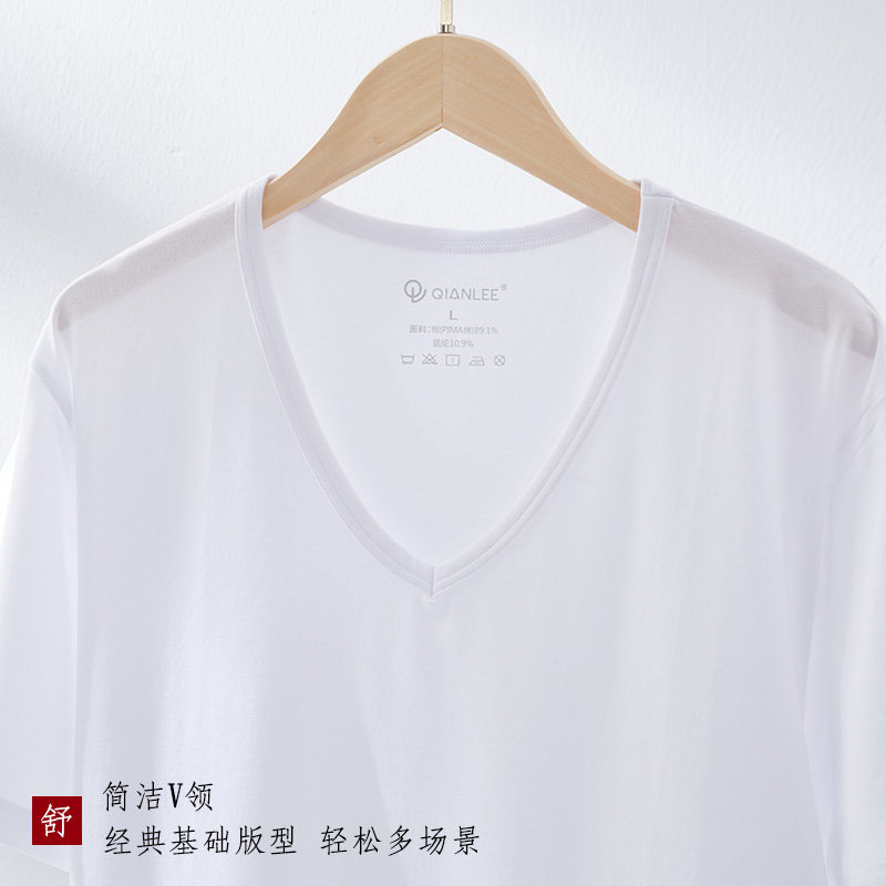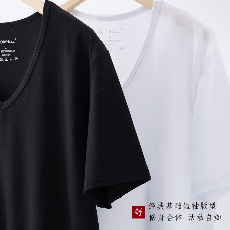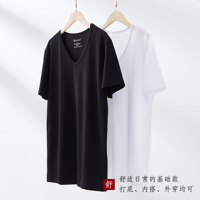 2 pieces short sleeve T-shirt male V collar inner hitch bottom SUPIMA cotton summer slim fit black and white men's underwear sweatshirt