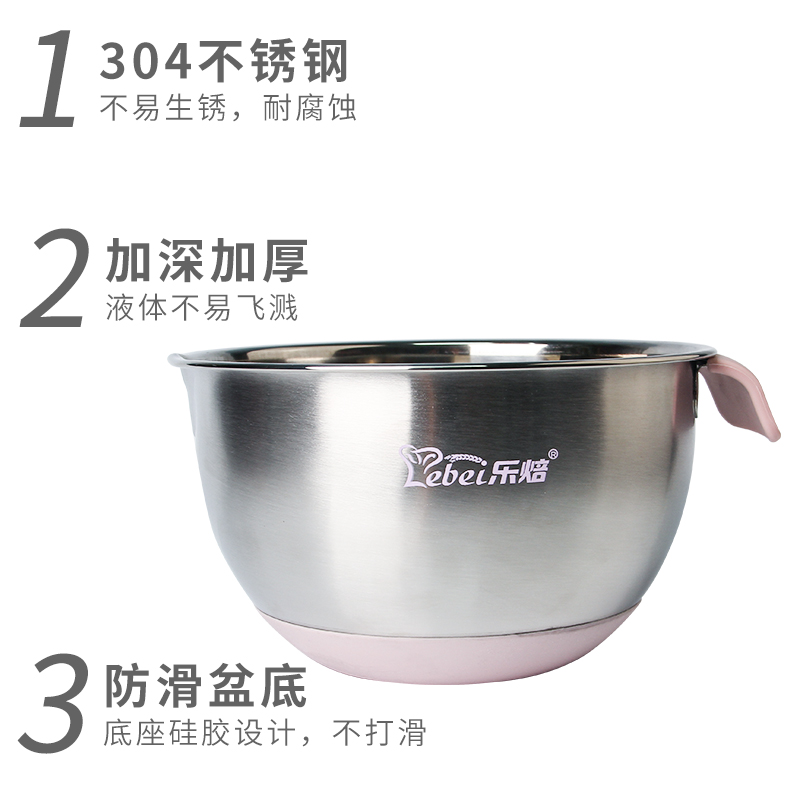 Le Baking Stainless Steel Whipped Egg Basin Non Stick face and face basin Kitchen Baking Tool Round deepen the washing basin