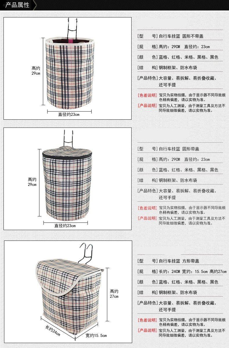 Thickened canvas basket Waterproof folding basket with lid Bicycle basket Cloth basket basket hanging basket Send pad