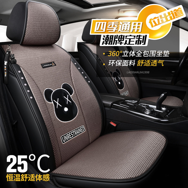 Summer ice silk car cushion breathable full surrounded cool pad summer cartoon four seasons universal fashion seat cover 21 new