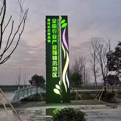 Spiritual fortress pointing sign Vertical outdoor guide sign Garage entrance sign Stainless steel promotional column customization