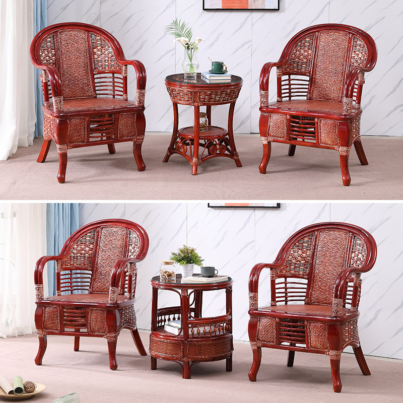 Rattan chair coffee table three-piece balcony living room real rattan single backrest chair leisure outdoor chair table and chair combination home