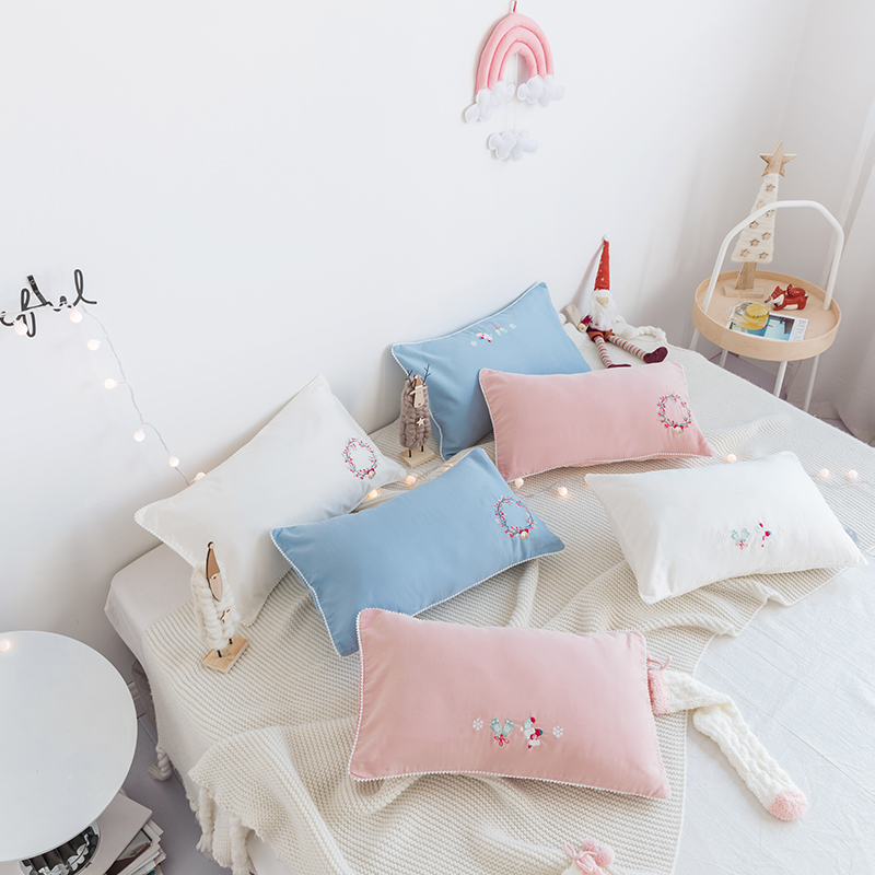 Children's Class A Embroidered Pillow Case Cotton Cartoon Baby 30x50 Baby Solid Color Pillow Case 40x60 Small Pillow Case