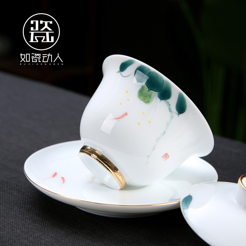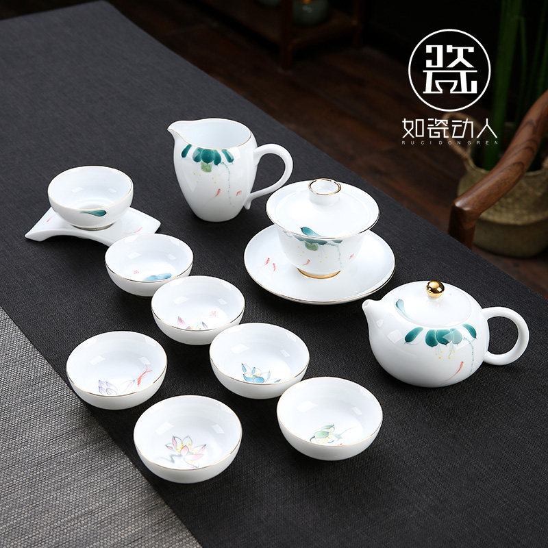 Such as porcelain touching hand plotter Gongfu tea furniture cover group home living room white porcelain cover bowl tea cup whole set of teapot sets