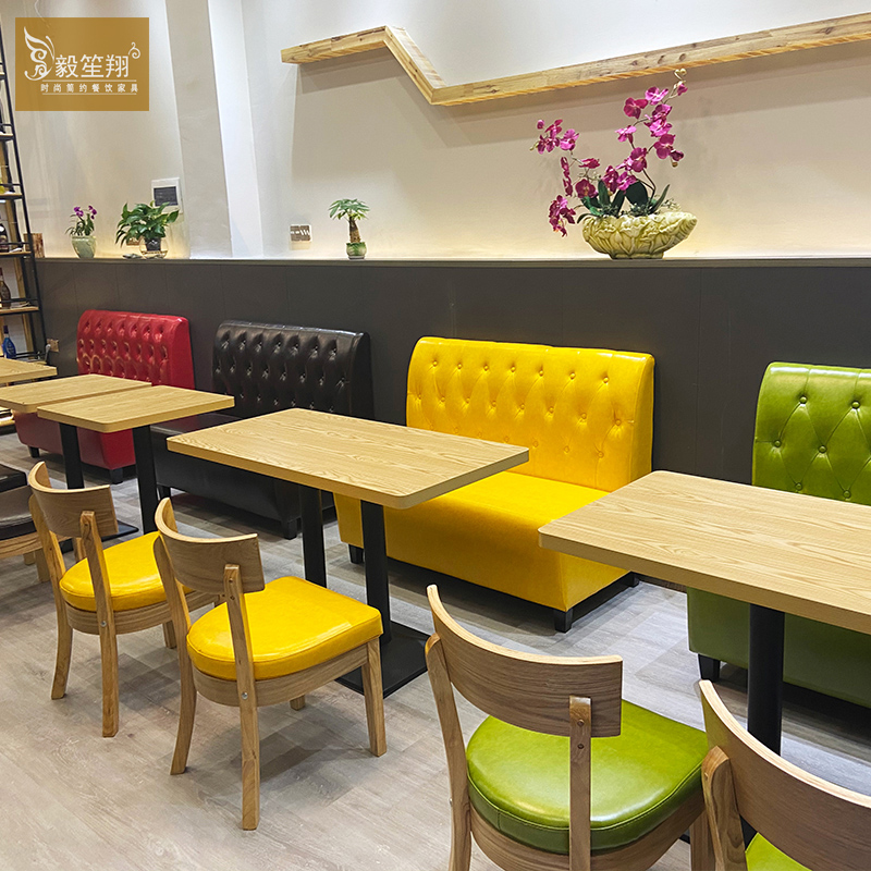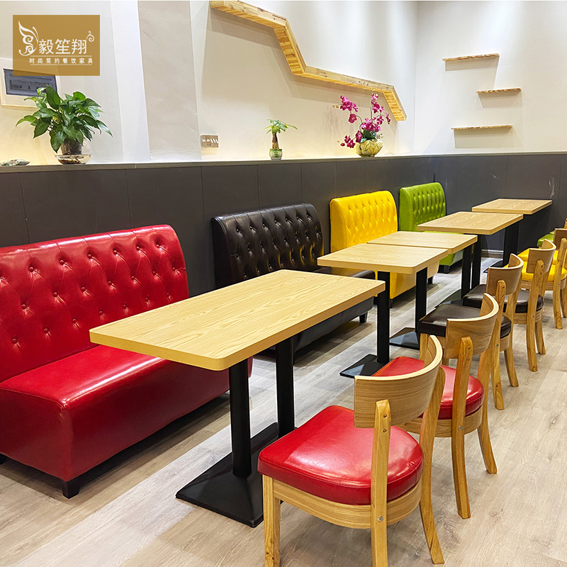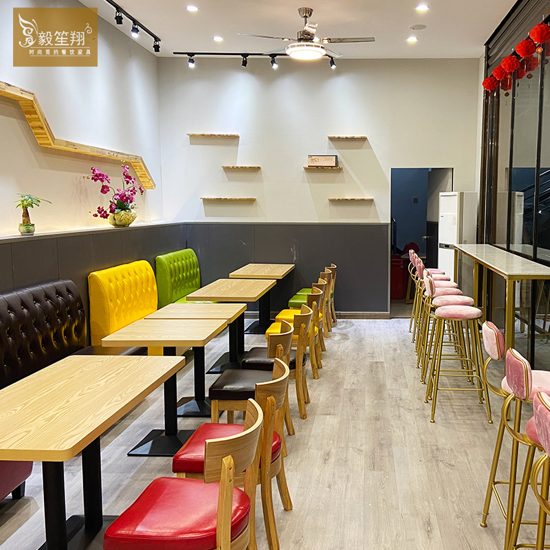 Net Red Milk Tea Shop Wall Card Seat Sofa Dessert Snack Bar Burger Shop Cafe Solid Wood Catering Commercial Tables and Chairs