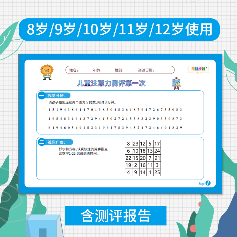 (3 years old, 4 years old, attention assessment) (5 years old, 6 years old, 7 years old, attention assessment) (8 9 10 11 Attention assessment for 12 years old) 100 reviews are sent to the evaluation