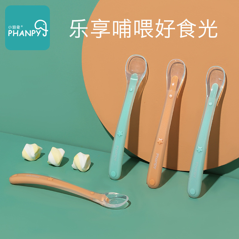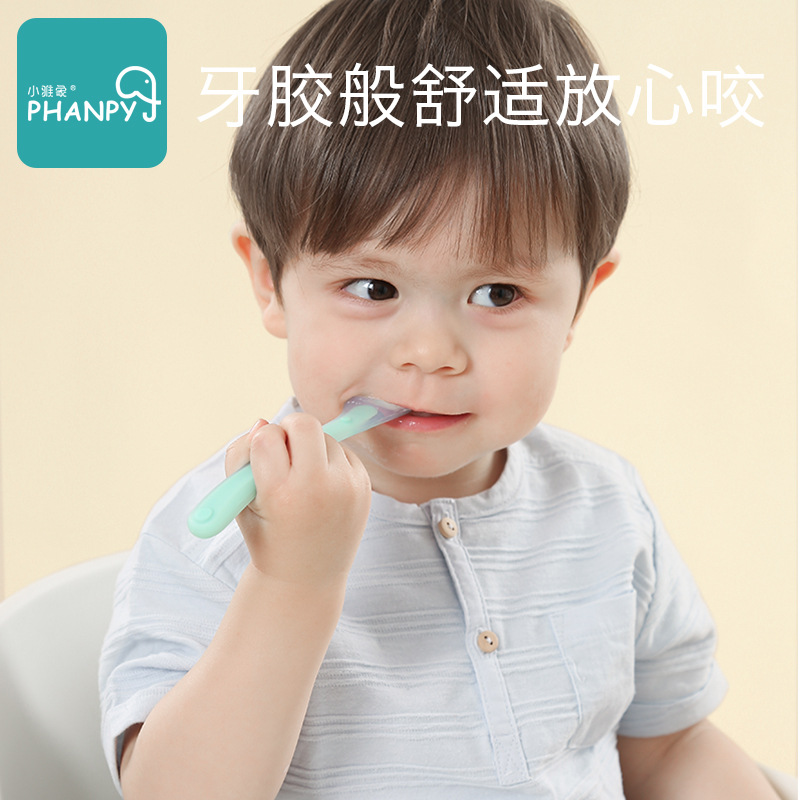 Xiao elephant baby silicone soft spoon newborn training learn to eat baby feed fruit soft head auxiliary artifact spoon