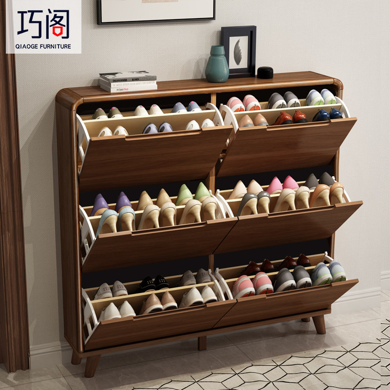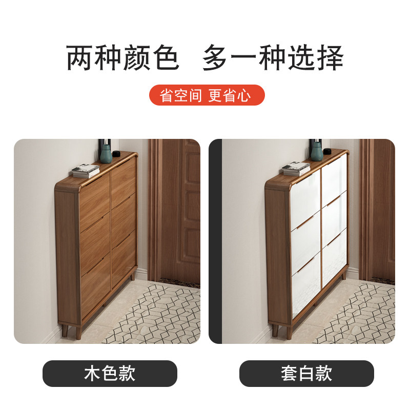 Shoe cabinet solid wood frame large capacity ultra-thin narrow home doorway entry small tipping bucket style minimalist modern door hall cabinet 17cm