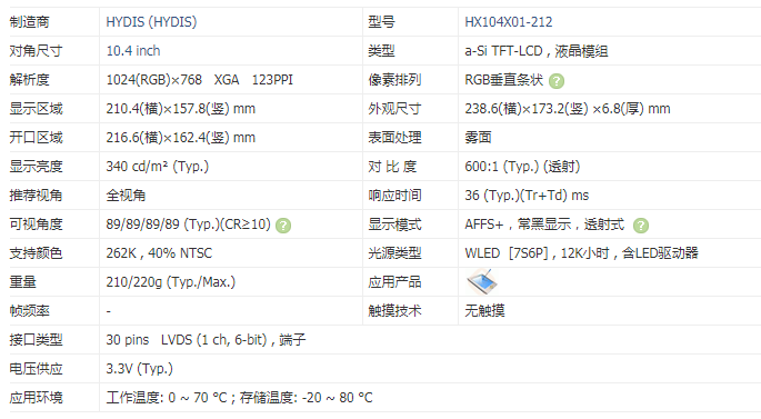 10 4 inch EDP 104x01 212HX104X02-101HX104X01-210