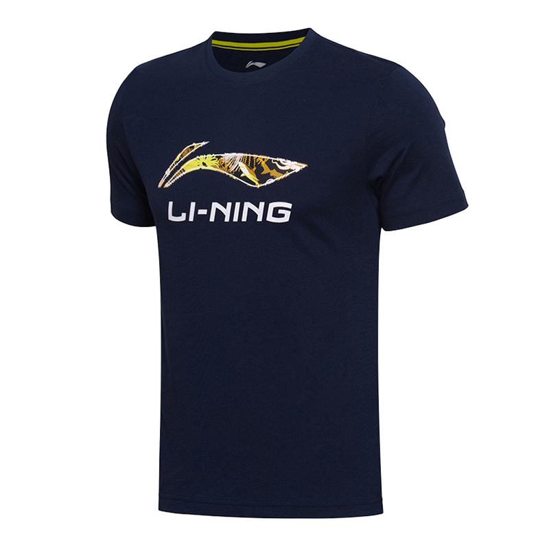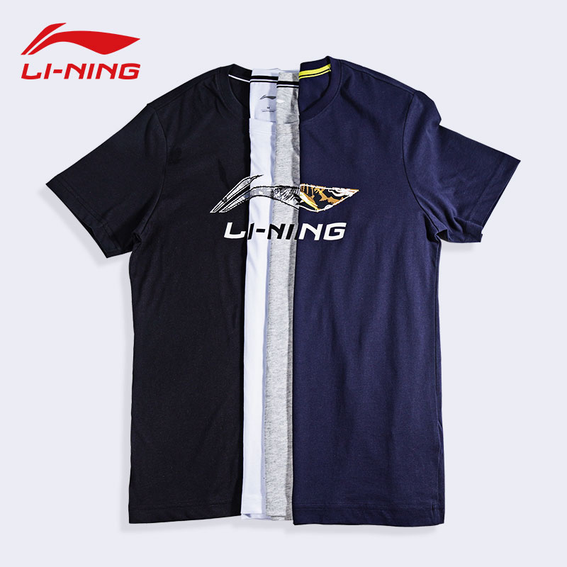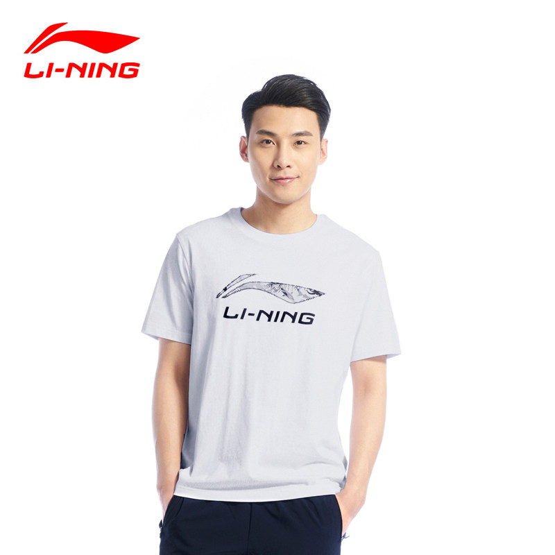 Li Ning T-shirt Male Summer Pure Cotton Round Collar Short Sleeve Large LOGO Loose Tide Casual Sports Blouse