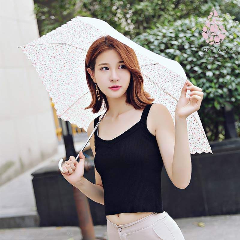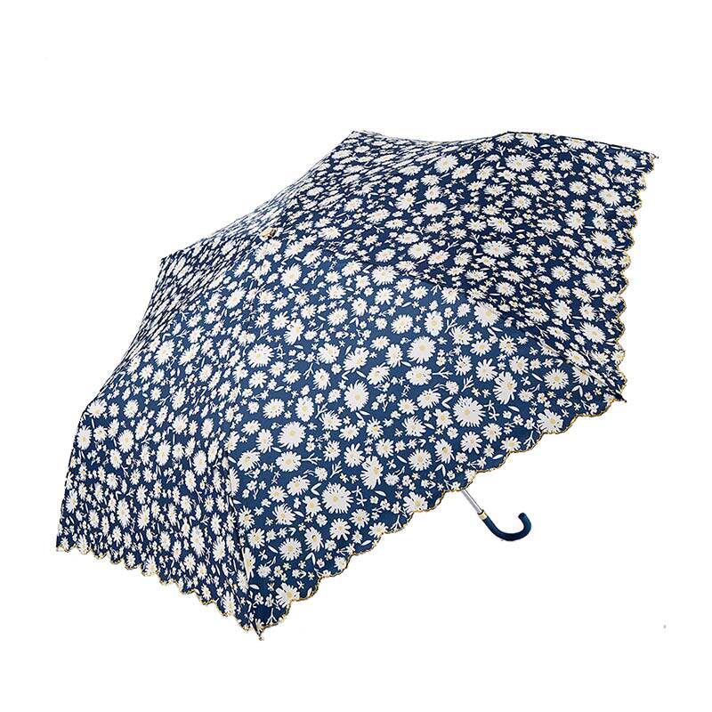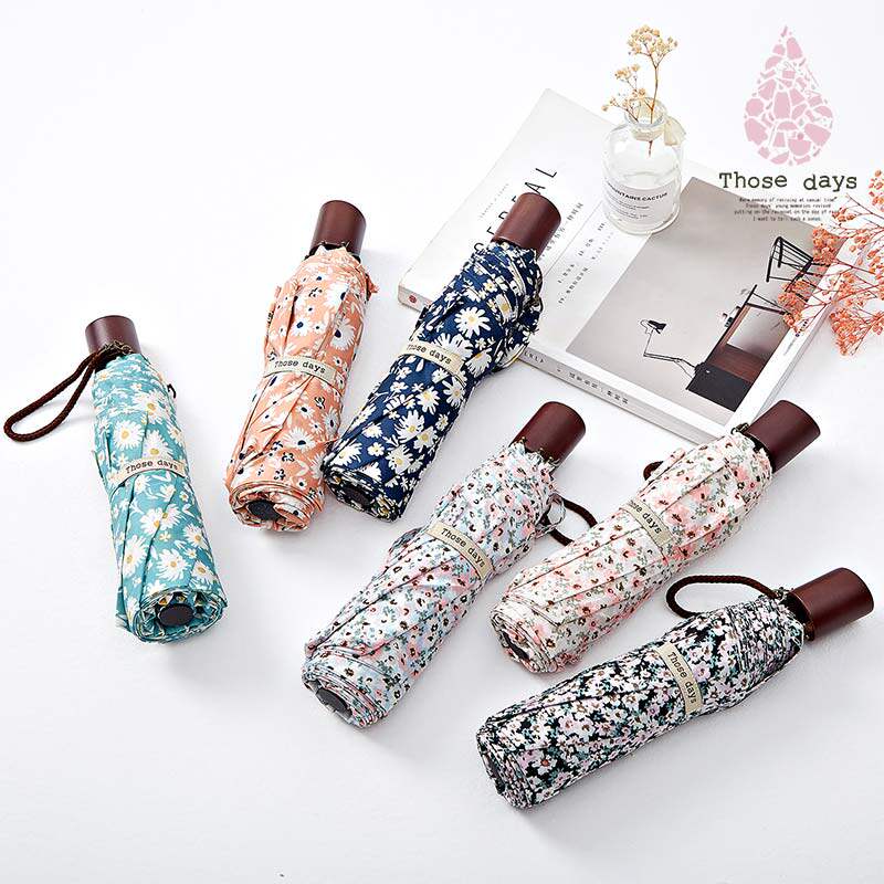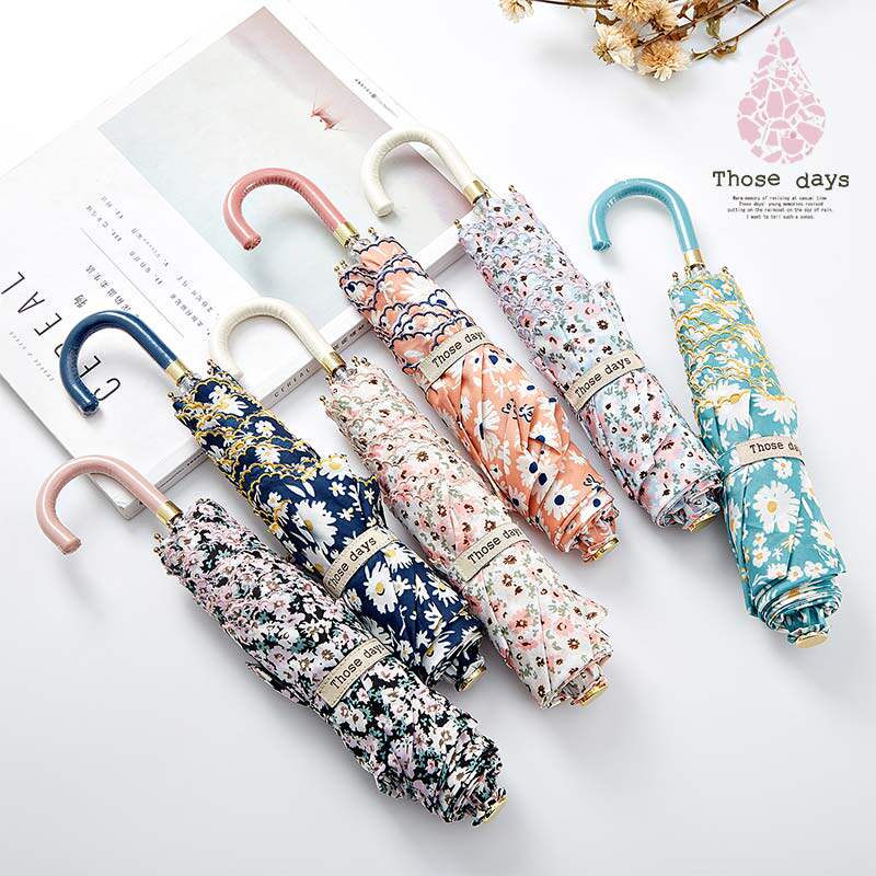 Mint green daisy curved handle three fold umbrella Cyan daisy curved handle three fold umbrella Orange daisy curved handle three fold umbrella Crushed flower curved handle three fold umbrella Black broken flower curved handle three fold umbrella Light blue broken flower curved handle three fold umbrella Thin