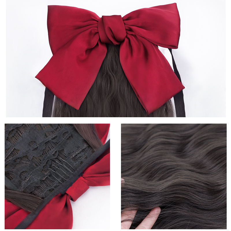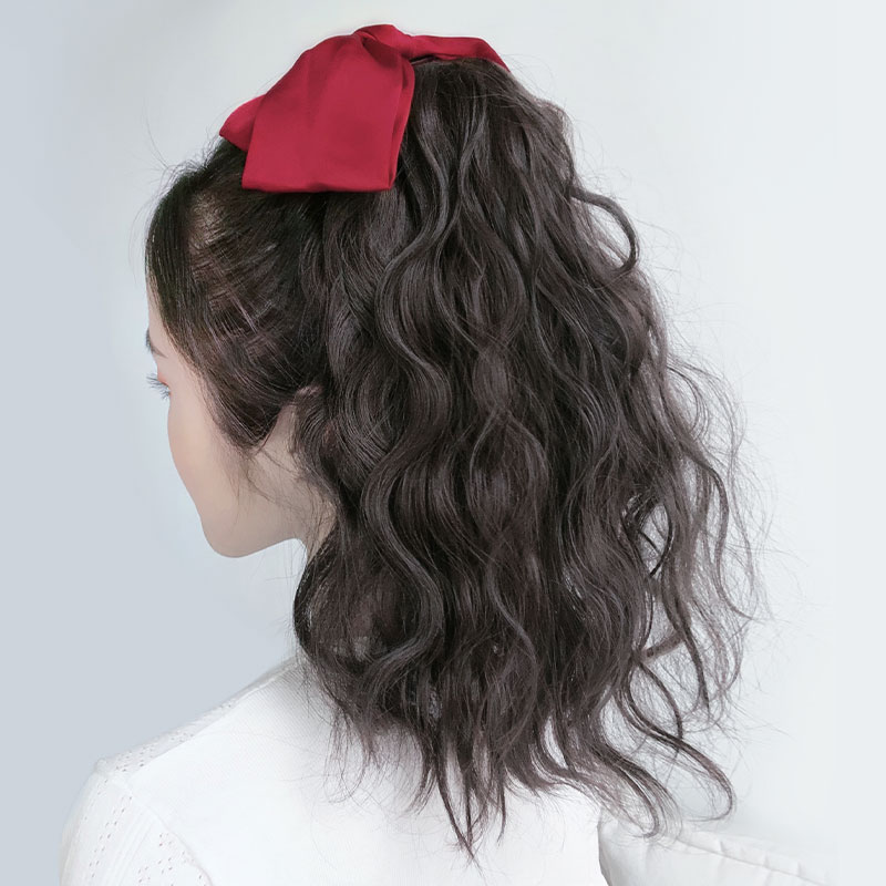 Wig female long hair ponytail wig female strap wool roll big bow ponytail subnet Red natural no trace