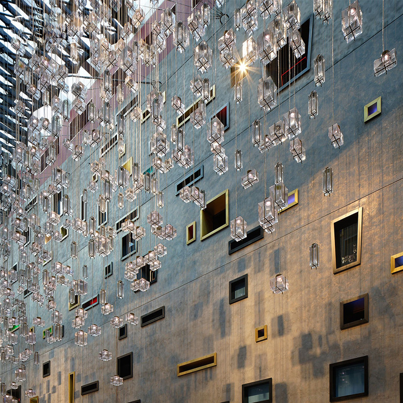 The glass chandelior is a