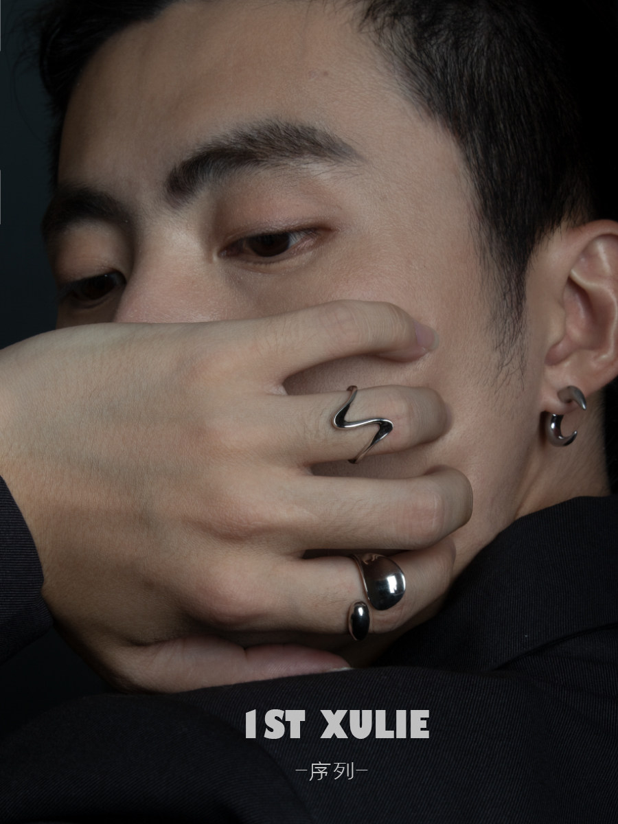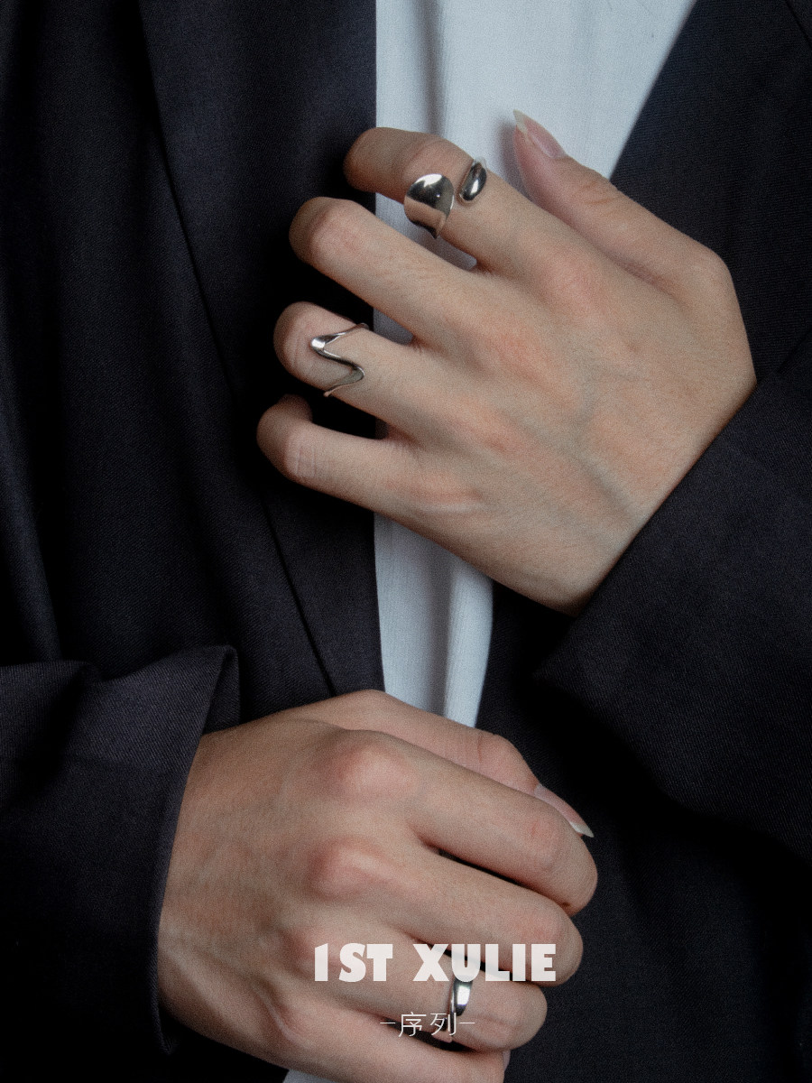 1ST XULIE-925 sterling silver niche design lines Minimalist cold wind personality men's and women's rings do not fade