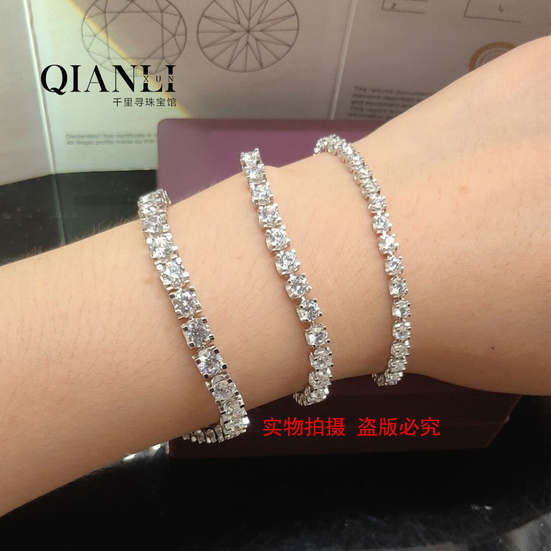 PT 950 Platinum imports Mosang diamond bracelet 18 K gold white four claw bull bracelet through the drill brush simple