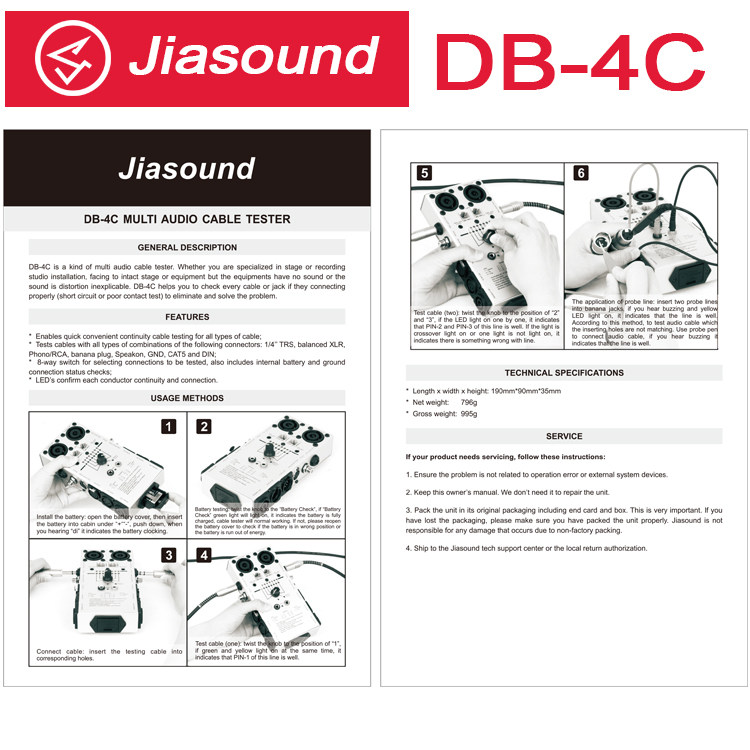 Jiasound DB-4C audio signal wire-detector network sound-sound engineering cable test-pass detection tester