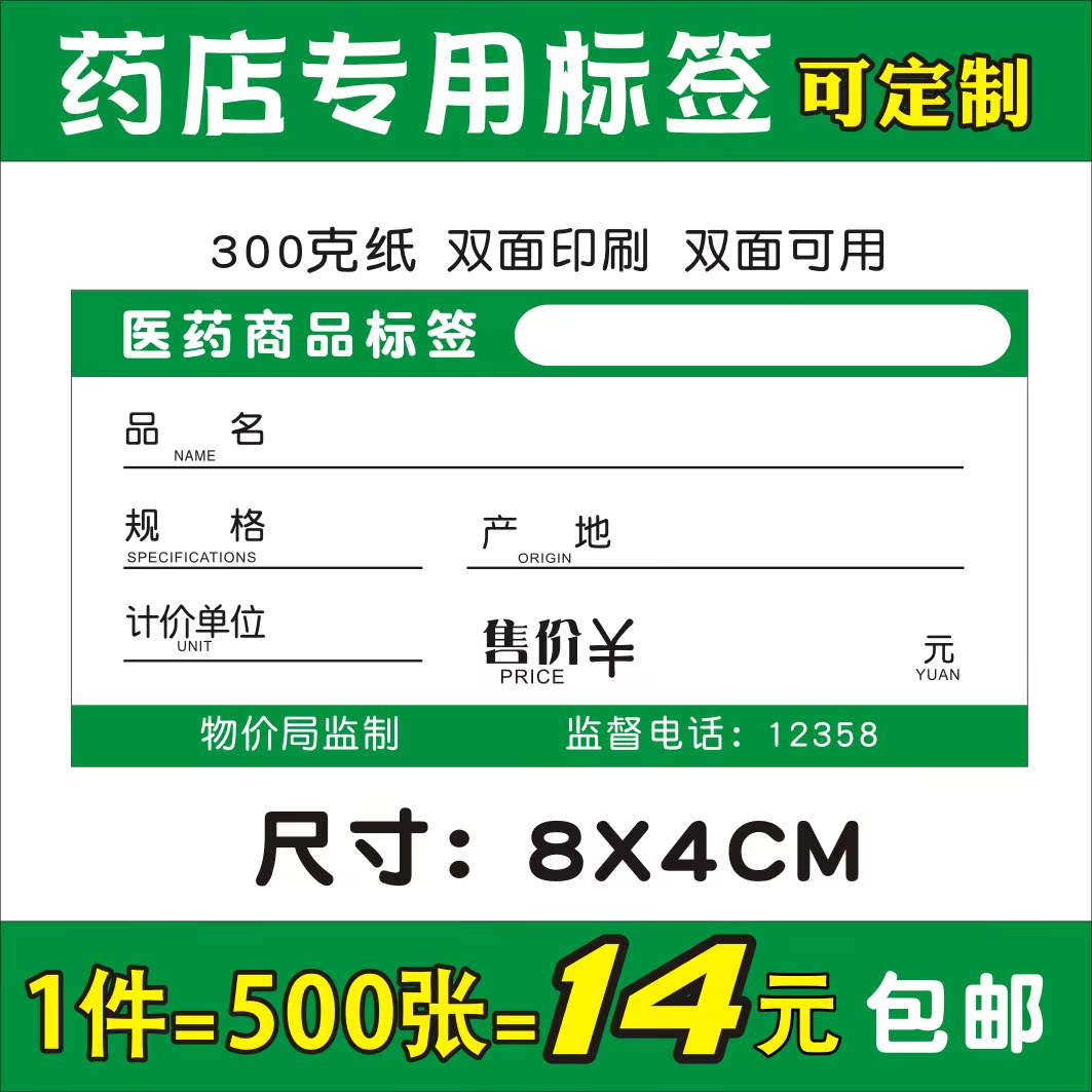 8x4cm drug mark price tag large pharmacy goods label paper price tag drugstore label hand-written custom made H paragraph