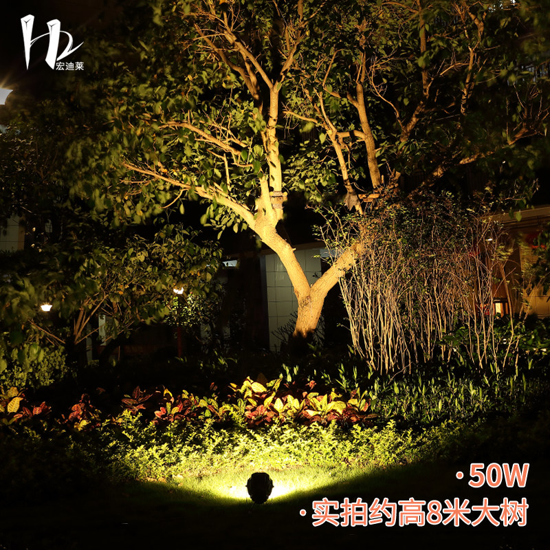 Hongdilai LED spotlight outdoor waterproof door head household tree light super bright spotlight high power cob tree spotlight